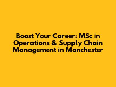Boost Your Career: MSc In Operations & Supply Chain