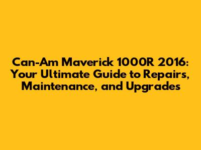 Can-Am Maverick 1000R 2016: Repairs, Maintenance & Upgrades