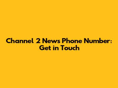 Channel 2 News Phone Number: Get In Touch
