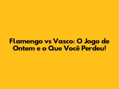 Flamengo Vs Vasco: O Jogo De Ontem E O Que Você Perdeu!