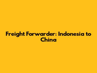 Freight Forwarder: Indonesia To China
