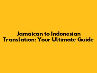 Jamaican To Indonesian Translation: Your Ultimate Guide