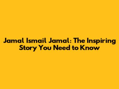 Jamal Ismail Jamal: The Inspiring Story You Need To Know