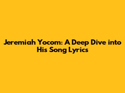 Jeremiah Yocom: A Deep Dive Into His Song Lyrics