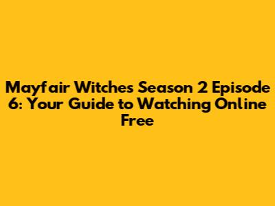 Mayfair Witches S2 E6: Watch Online Free Guide
