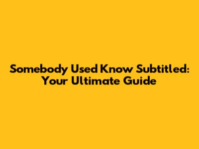 Somebody Used Know Subtitled: Your Ultimate Guide