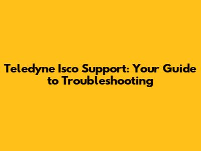 Teledyne Isco Support: Your Guide To Troubleshooting