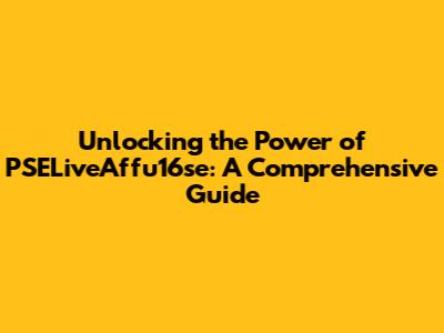 Unlocking The Power Of PSELiveAffu16se: A Comprehensive Guide
