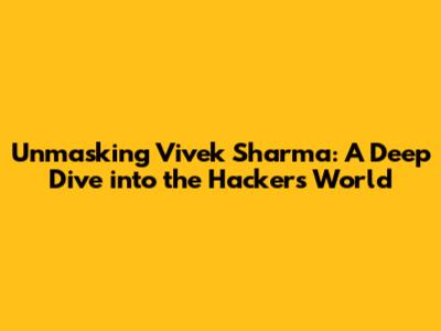 Unmasking Vivek Sharma: A Deep Dive Into The Hacker's World