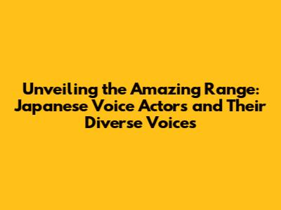 Unveiling The Amazing Range: Japanese Voice Actors And Their Diverse Voices