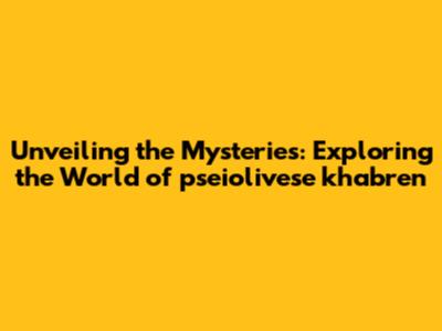 Unveiling The Mysteries: Exploring The World Of Pseiolivese Khabren