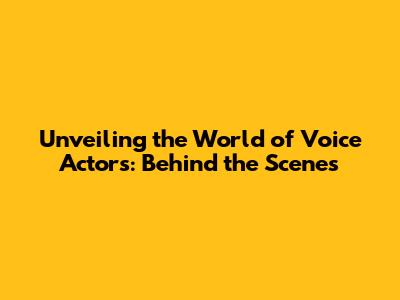 Unveiling The World Of Voice Actors: Behind The Scenes